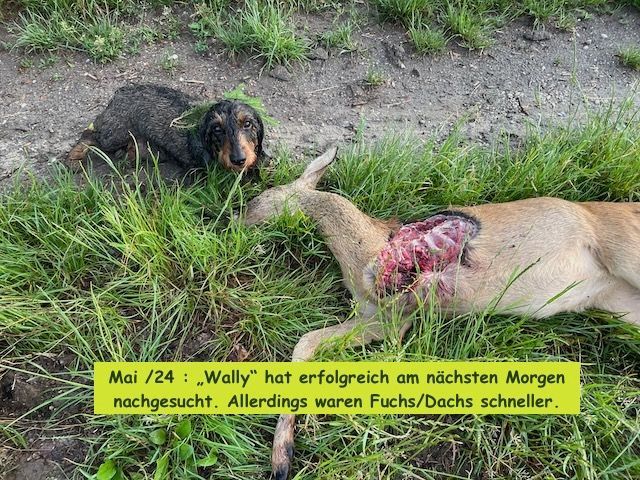 "Geierwally II" (Wally) ist eine überragende Nachsucherin auf der Schweißfährte, gibt nie auf und findet.Diese Eigenschaft vererbt sie auch! Aktuell beweisen das Max, Maximiliane und Macho-Murphy aus ihrem letzten Wurf vom 12.06.21. davon zweimal mit 1. Preis bei der Schweißprüfung !