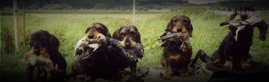 Das ist "Flori aus Erdinger Rauhhaar" und sein Bruder "Franzjosef ll" Söhne von"Bella II"beide sind gut ausgebildete und geprüft Schweißhunde. Sie haben schon sehr viele erfolgreiche Nachsuchen auf Schalenwild.
