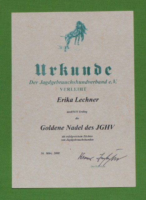 Der Jagdgebrauchshundeverband (JGHV) verlieh im Jahr 2006 die Auszeichnung um